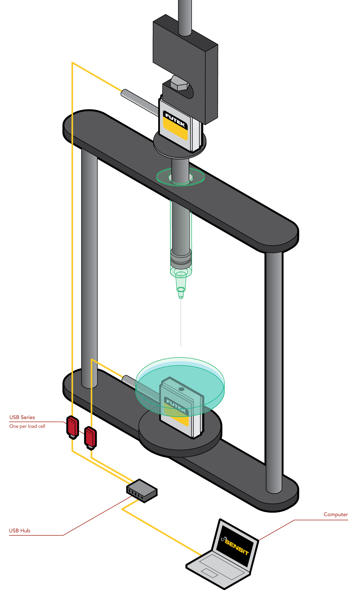 两只S型测力传感器(LSB200),及相关配套的USB采集模块、SENSIT采集软件。